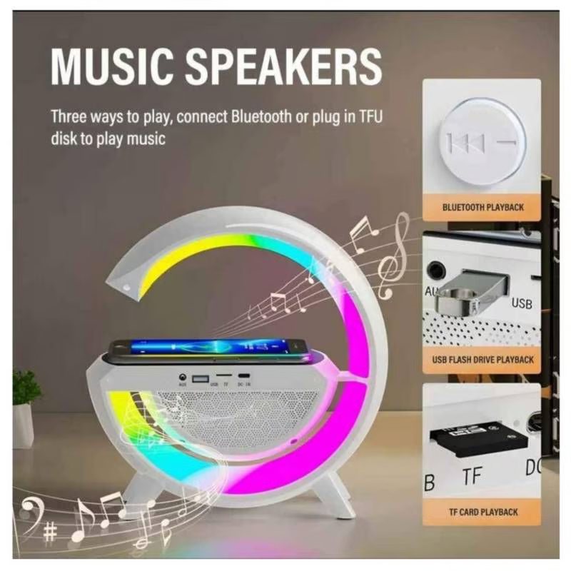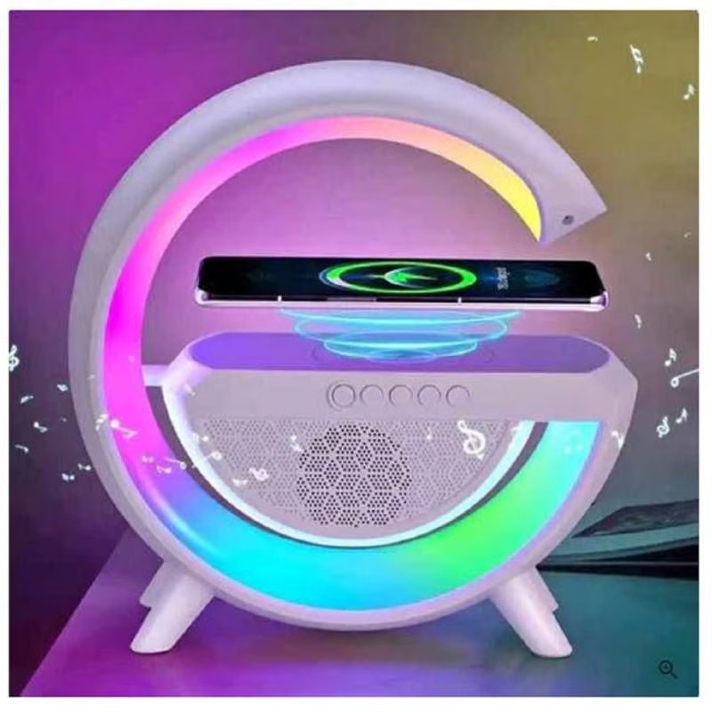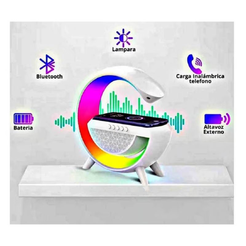 Modo de concentración y meditación Usa el altavoz bluetooth en tu habitación, oficina o estudio, puedes cambiar de tema según diferentes estados de ánimo, es una buena compañero para ajustar la atmósfera, será ayudarte a calmarte y disfrutar de tu yoga, tiempo de spa y relajación Características: CARGADOR INALAMBRICO + PARLANTE con Cargador inalámbrico multifuncional + Altavoz Bluetooth + Lampara luces rgb + contesta llamadas + radio Descripción ✓Salida inalámbrica :✓Salida LDE: 10W ✓Potencia de audio Bluetooth: ✓Material: policarbonato ABS. ✓Color del producto:, blanco. ✓Modo de iluminación: 256 tipos ✓Distancia de transmisión: 10mm ✓Eficiencia de carga: 100% ✓CARGA INALÁMBRICA 100