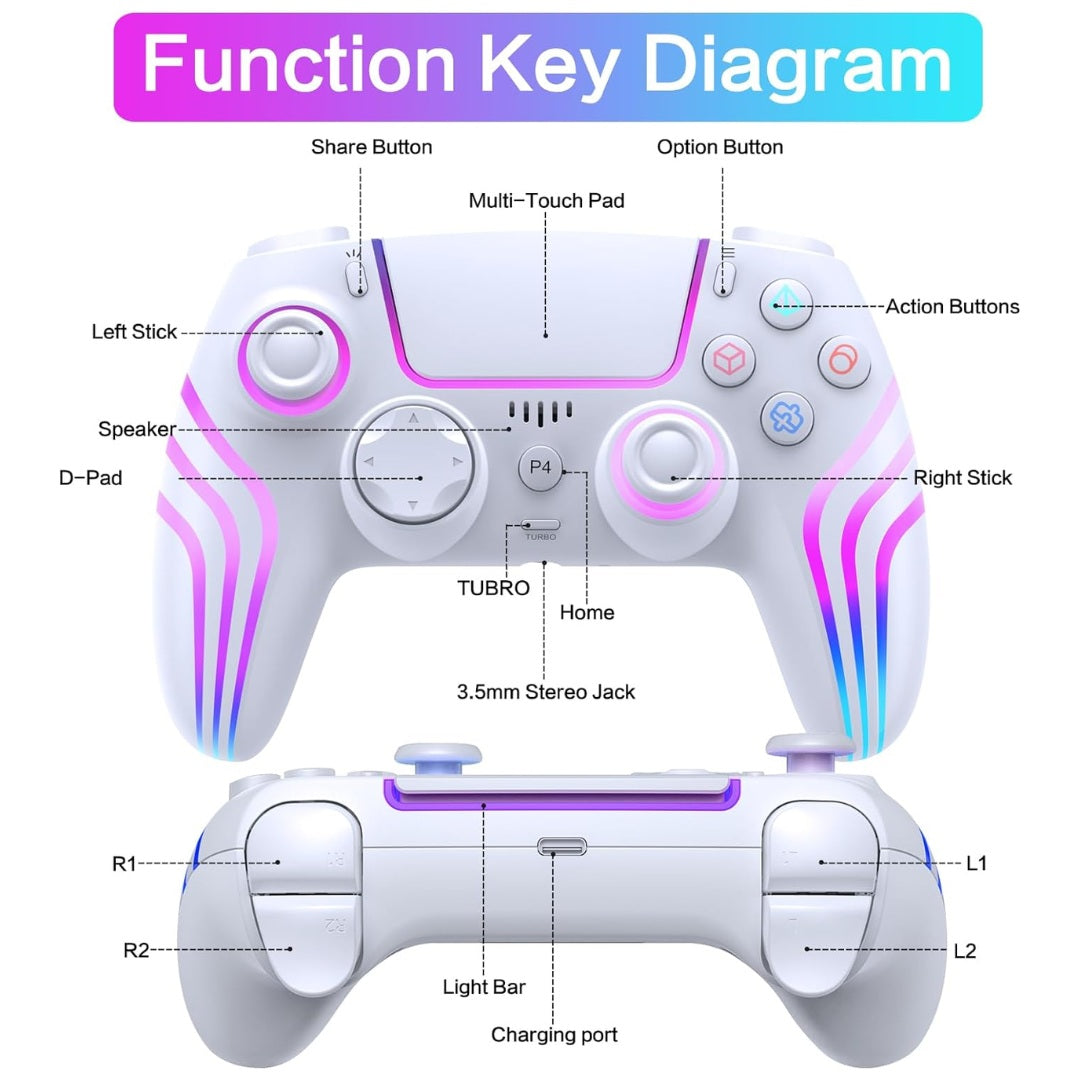 Controlador inalámbrico PS4 con luz deslumbrante.