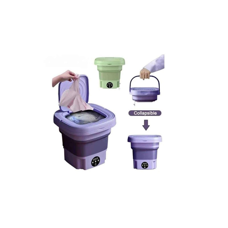 Esta innovadora mini lavadora es la solución perfecta para quienes buscan mantener su ropa y objetos personales limpios sin ocupar mucho espacio. Con su diseño plegable y portátil, esta lavadora es versátil y fácil de almacenar, cabiendo sin esfuerzo junto al armario, debajo de la cama, el sofá o incluso en el fregadero.